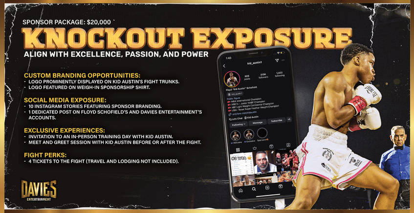 I developed a B2B sponsorship deck for Davies Entertainment to promote one of their rising boxing talents, Kid Austin. The deck was crafted to appeal to potential sponsors by showcasing Kid Austin’s story, marketability, and brand alignment opportunities. I combined engaging visuals with clear, persuasive content that highlighted his athletic achievements, audience reach, and potential for brand partnerships. This project allowed me to merge design with strategic communication, creating a professional, polished tool that effectively positioned the athlete as a valuable investment for sponsors.